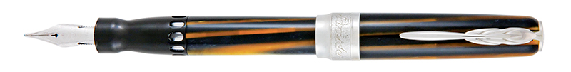 The unique design of the Limited Edition Arco fountain pen is a stratification of layers of materials, creating a design with colors that were popular in the ‘30s. After intensive research, Pineder has been able to replicate these famed hues with several layers of resin, creating a visual effect that mimics celluloid—a once popular material in pen manufacturing. This new resin is more durable and does not face the crystallization issues of celluloid, making the Arco an amazing upgrade. This fine writing instrument is complemented by 14 kt Quill Nib, a twist magnetic cap lock, and a piston filling mechanism. There are only 888 Arco fountain pens available, making this great beauty the opportunity of a lifetime. |