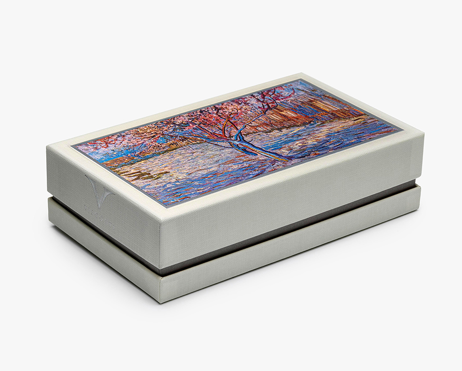 Visconti proudly introduces a new collection crafted from a new manufacturing process called "Press Mould". Developed by Visconti, this new process produces fantastic new colors obtained with natural resin and vegetal components. The color patterns vary from piece to piece, recalling the beautiful impressionist paintings of Van Gogh himself. Packaged in a lovely gift box, the Van Gogh will make quite an impression as a gift. The Visconti Van Gogh fountain pen features a Steel nib, available in fine, medium and broad, and a cartridge/converter filling system. |